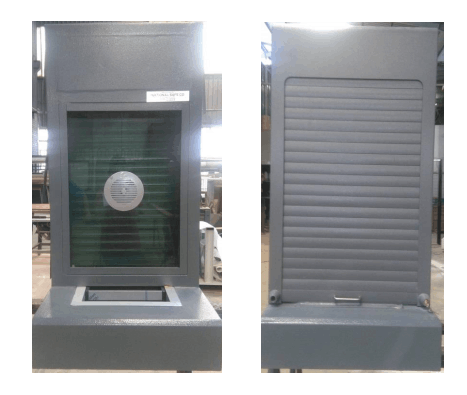 Units consist of a counter section which incorporates a sliding drawer to facilitate safe transfer of cash and documents. The frame around the window is so designed that it allows normal conversation. Bullet existing glass protects the cashier against attacks by small arm fires. The frame is made of aluminium and the base is finished in storm grey, oak or mild steel with primer finish.
